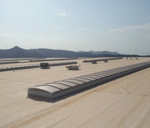 Esta cubierta cuenta con una superficie de 2400 m2. Como detalle, en la cubierta se instalaron unos lucernarios made Cubiertas Dos Hermanas, así como 4 uds de Lledó Sunoptics, con el objetivo de dejar pasar y, a la vez, regular la luz natural. Los resultados, como siempre, fueron más que óptimos.